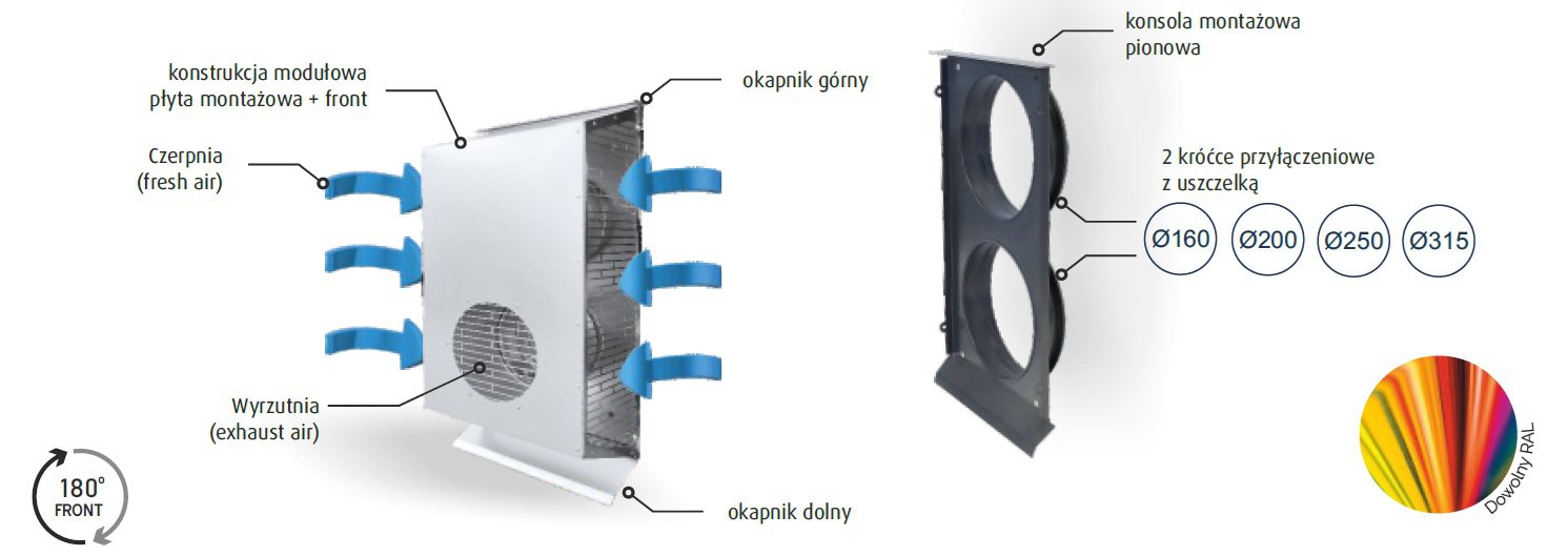 Czerpnio-wyrzutnia zblokowana QUADRO (pionowa czerpnia i wyrzutnia w 1 obudowie). Stosowana w przypadkach kiedy nie ma możliwości zastosowania oddzielnej czerpni i wyrzutni w wymaganej odległości od siebie. Konstrukcja sprawia, że strumienie powietrza nie mieszają się i nie zakłócają swojego przepływu.