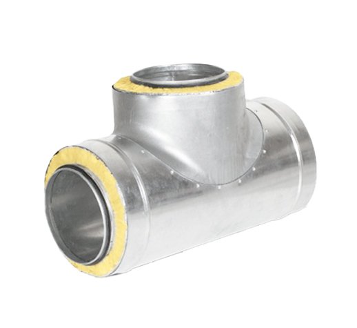 Trójnik wentylacyjny preizolowany ITSP z blachy ocynkowanej produkowany jest w zakresie średnic od 125 mm do 500 mm.